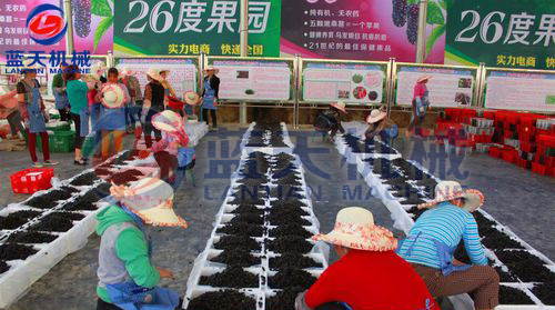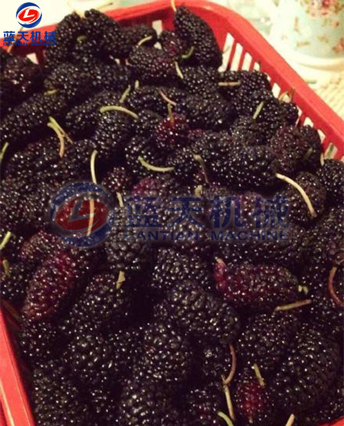 將所采的桑葚薄攤在匾內(nèi),剔除果穗中的枯葉干枝,除去霉?fàn)€或變色的不合格果粒。將成熟度相近的集中放在同一托盤內(nèi)。