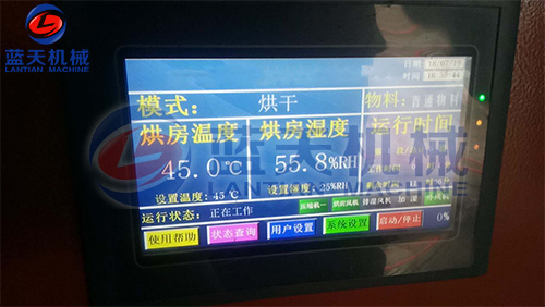 設(shè)置烘干參數(shù):桑葚是高糖分、高水分含量的漿果,較長(zhǎng)果形是由一個(gè)一個(gè)小果囊的形狀組成,水分難以出來(lái),所以需要較長(zhǎng)的時(shí)間。同時(shí)烘干溫度又不能太高,溫度太高,就容易影響花青素的有效含量。烘干第一階段溫升一小時(shí),不排濕,烘干模式,讓烘干房上升至50度左右。第二階段設(shè)為烘干+排濕模式,目標(biāo)濕度為60%,目標(biāo)溫度設(shè)為55度。第三、第四階段每一階段上升5度,目標(biāo)濕度下降10%,讓烘干房不斷排濕。最終一個(gè)階段目標(biāo)濕度設(shè)為15%左右。如果條件許可,可以考慮在第四階段末了,停機(jī)靜置一段時(shí)間再?gòu)?fù)烘,這樣果干內(nèi)部的水份滲出后被復(fù)烘的熱量加熱揮發(fā),果干果形更好,同時(shí)總體能效更好。