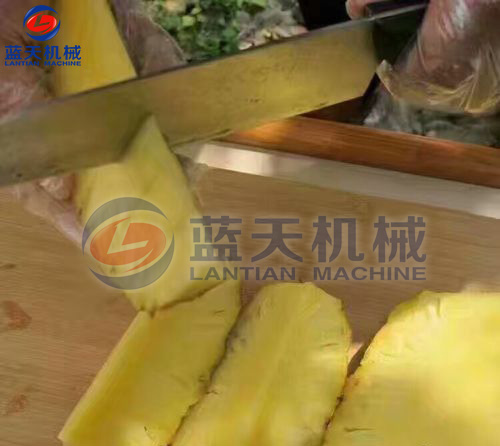 第二步:菠蘿切片的過(guò)程,烘干前期切片可以切圓片,或者半圓片都可以,主要看產(chǎn)品要求。