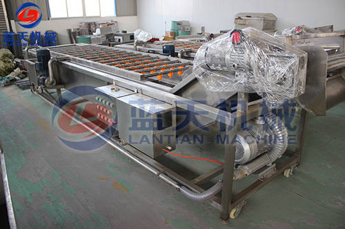 將洗干凈的原料根據(jù)產(chǎn)品要求分別切成片、絲、條等形狀。預(yù)煮時(shí),因原料不同而異,易煮透的放沸水中焯熟,不易煮透的放沸水(水溫一般在150℃以上)中略煮片刻,一般燙漂時(shí)間為2~4分鐘。葉菜類最好不燙漂處理。