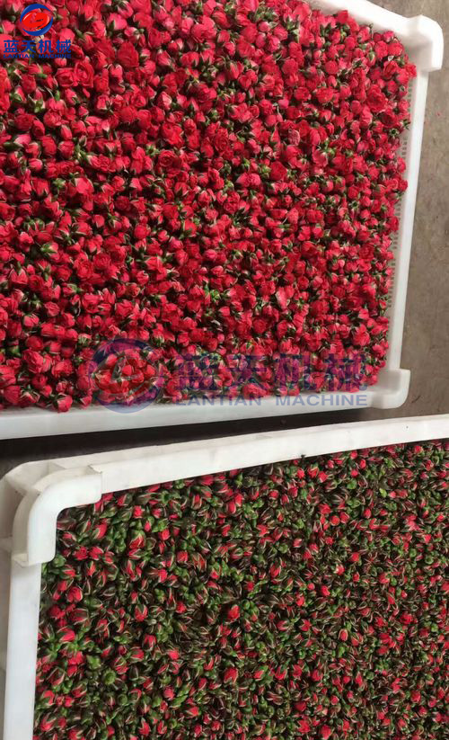 玫瑰花的商品花分為花苞和鮮花,在烘干工藝的程序上有所不同,下面我們結(jié)合實(shí)際的現(xiàn)場情況做一次整個工藝流程的介紹。