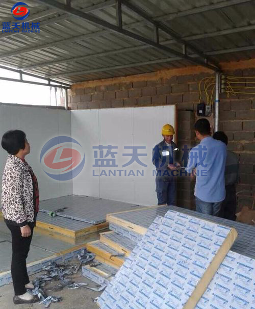 烘房板材包括底板和門板的厚度根據(jù)實際情況,可采用5-10公分左右的厚聚氨酯發(fā)泡板保溫,底板內(nèi)外鍍鋅板。一方面這種材料具有良好保溫效果的恒溫室,輕便安裝的同時,具有一定的耐磨和耐壓性能、在一般良好和惡劣的環(huán)境中都能夠適應。使用年限十年以上;另一方面能確保烘干房循環(huán)均勻風,保證物料在一個緩慢均勻的環(huán)境中實現(xiàn)水分的蒸發(fā),保證在整個烘干房內(nèi)物料的烘干均勻度。
