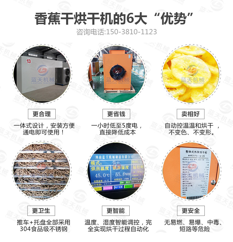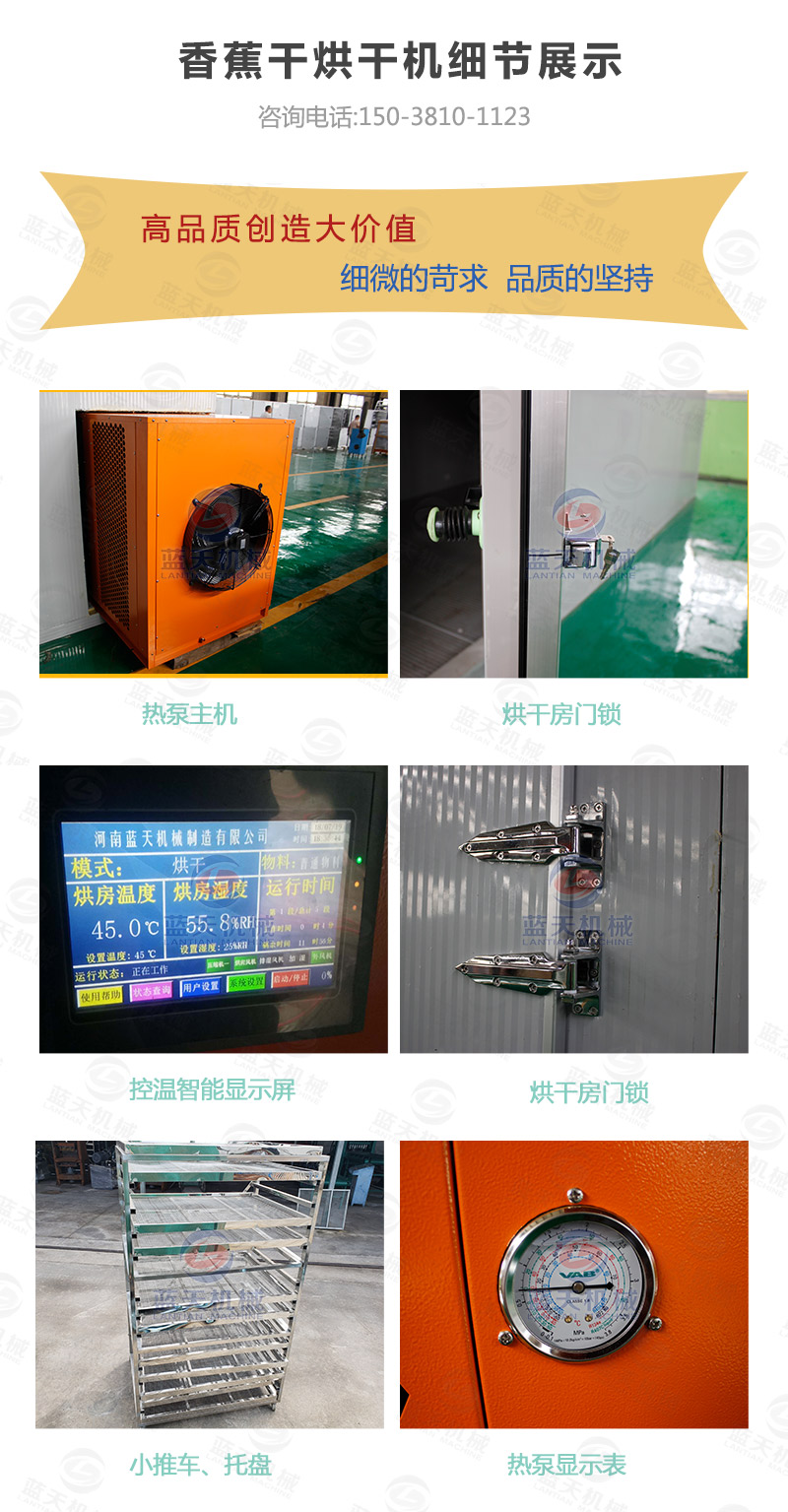 香蕉干烘干機使用的是熱泵空氣能加熱系統(tǒng),所以香蕉片烘干過程中受熱更加均勻。