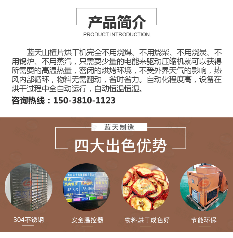 山楂片烘干機(jī)多少錢?使用空氣能熱泵作為熱源的山楂片烘干機(jī)價(jià)格經(jīng)濟(jì)實(shí)惠,適合果農(nóng)投資,請您放心聯(lián)系咨詢我們。
