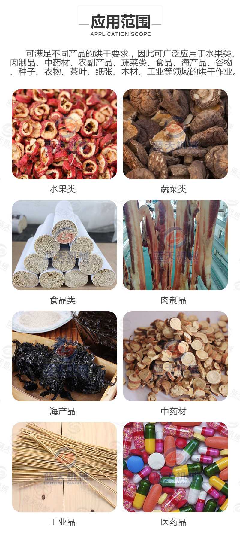 新鮮山楂片的含水率約為80%,烘干的目標(biāo)含水率約為13%,使用空氣能熱泵小型山楂片烘干機(jī),將智能溫度設(shè)定為55度左右的范圍,使山楂片所含的游離水大量蒸發(fā),熱風(fēng)循環(huán)系統(tǒng)不斷輸送新風(fēng),將風(fēng)量均勻的輸送到各層架,排風(fēng),促使蒸發(fā)的水份通過凝結(jié)水管路系統(tǒng)排出。