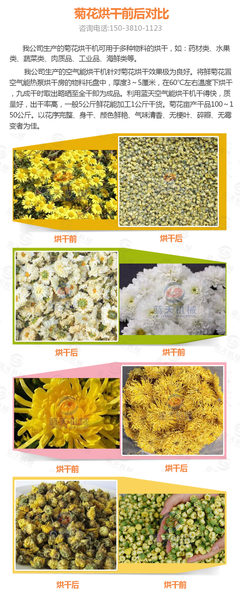 一、菊花烘干機(jī)采用熱泵烘干,符合環(huán)保需求以往有客戶采用煤加熱或其他柴加熱的烘干機(jī)來烘干菊花,這些烘干方式污染大,政府提出了以電能替代以往的燃煤、燃?xì)饧訜岬暮娓蓹C(jī),菊花烘干機(jī)可以選用以電為熱源來烘干菊花比較合適。目前,以電為熱源的菊花烘干機(jī)設(shè)備有電加熱菊花烘干機(jī)和空氣能熱泵菊花烘干機(jī)。