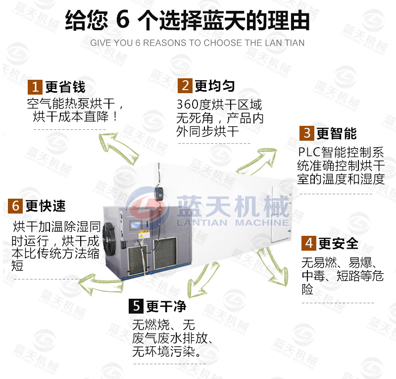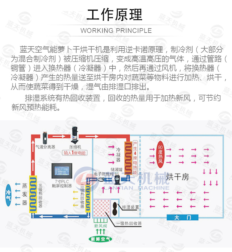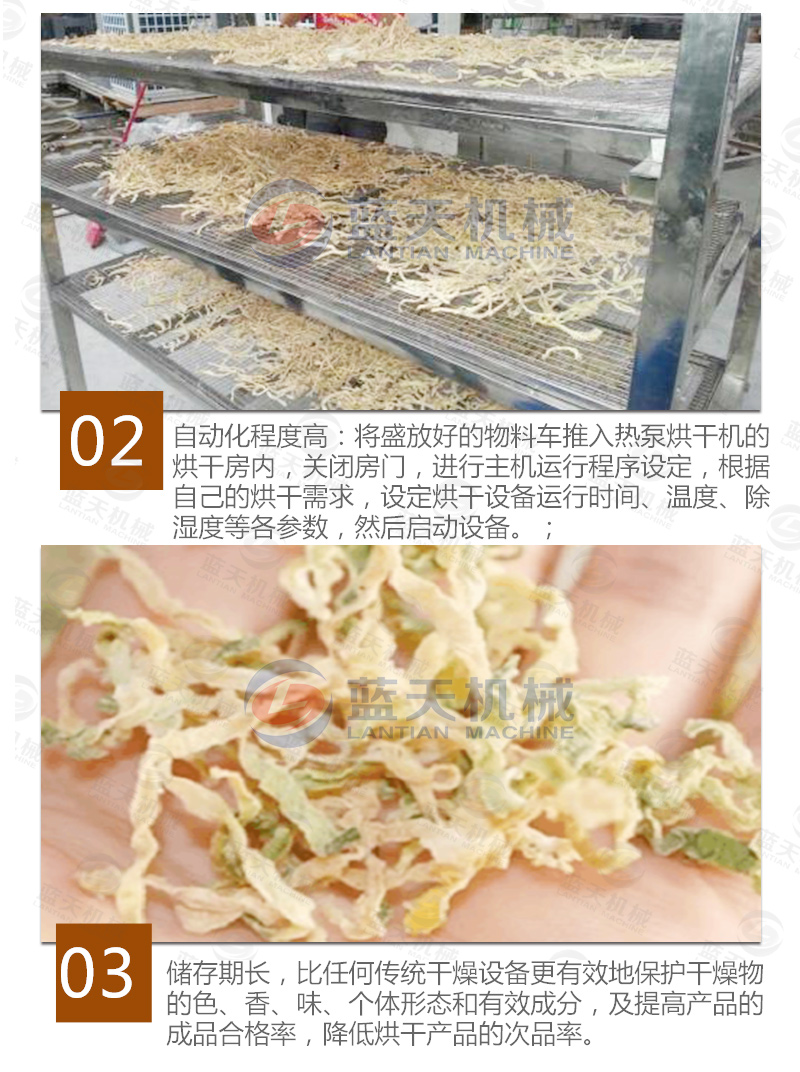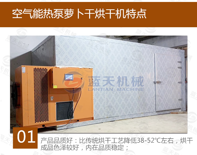 空氣能熱泵蘿卜干烘干機,在蘿卜干烘干過程中的優(yōu)點: