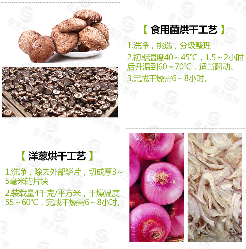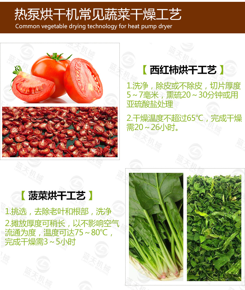 2、烘干時間短。高溫熱泵烘干脫水蔬菜生產工藝,所需用的時間不會超過8h,一般從預熱到出產品4h即可完成。