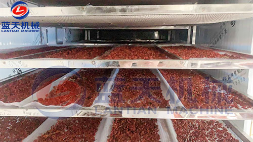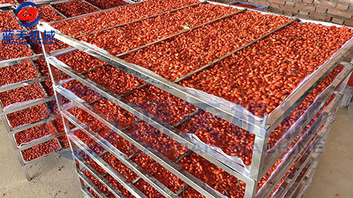 寧夏枸杞烘干機(jī)客戶烘干枸杞現(xiàn)場(chǎng),客戶先把新鮮的枸杞鋪在物料托盤(pán)上,枸杞鋪好后,將物料盤(pán)推進(jìn)寧夏枸杞烘干房設(shè)置好對(duì)應(yīng)的烘干參數(shù)進(jìn)行烘干。